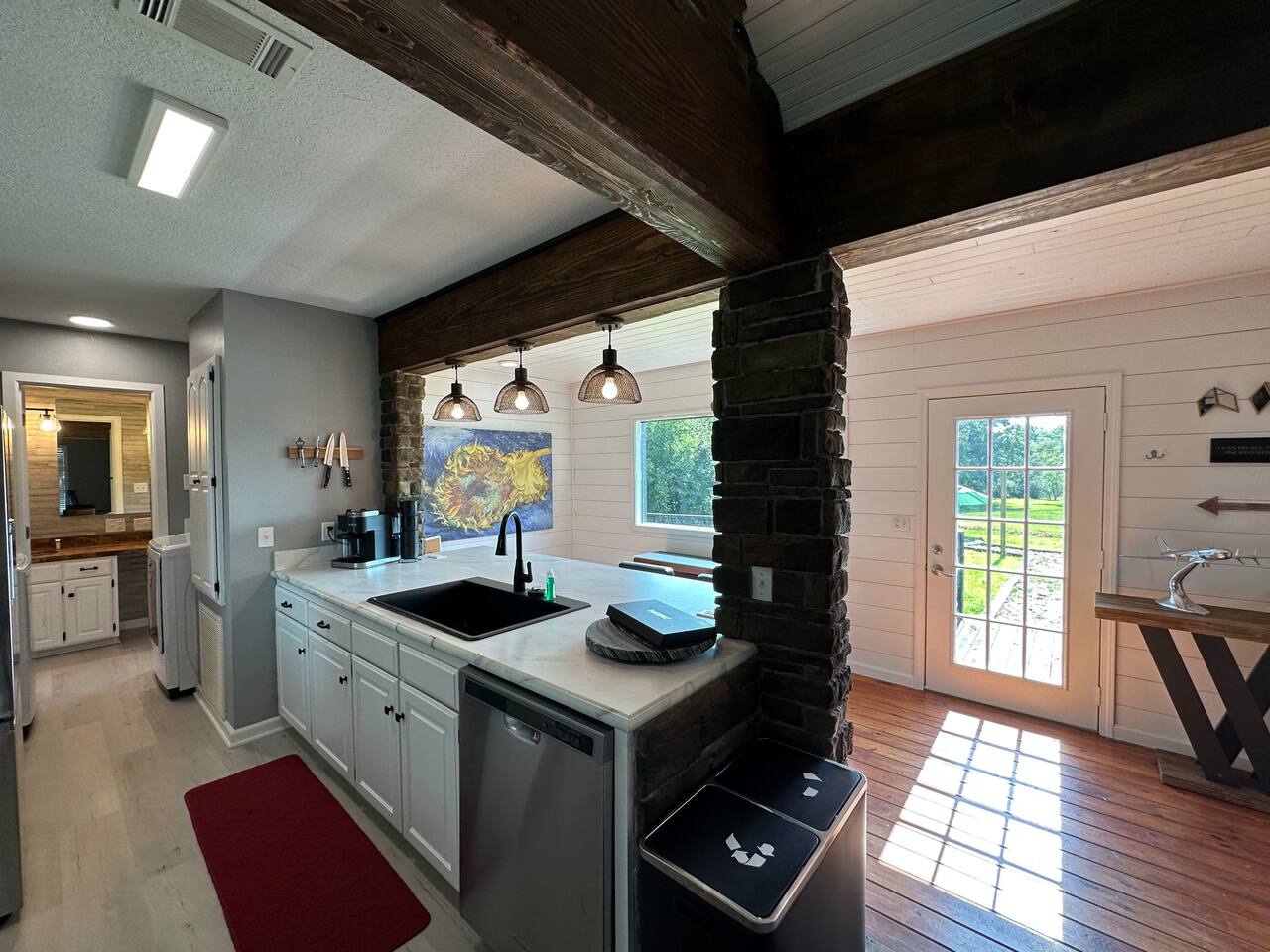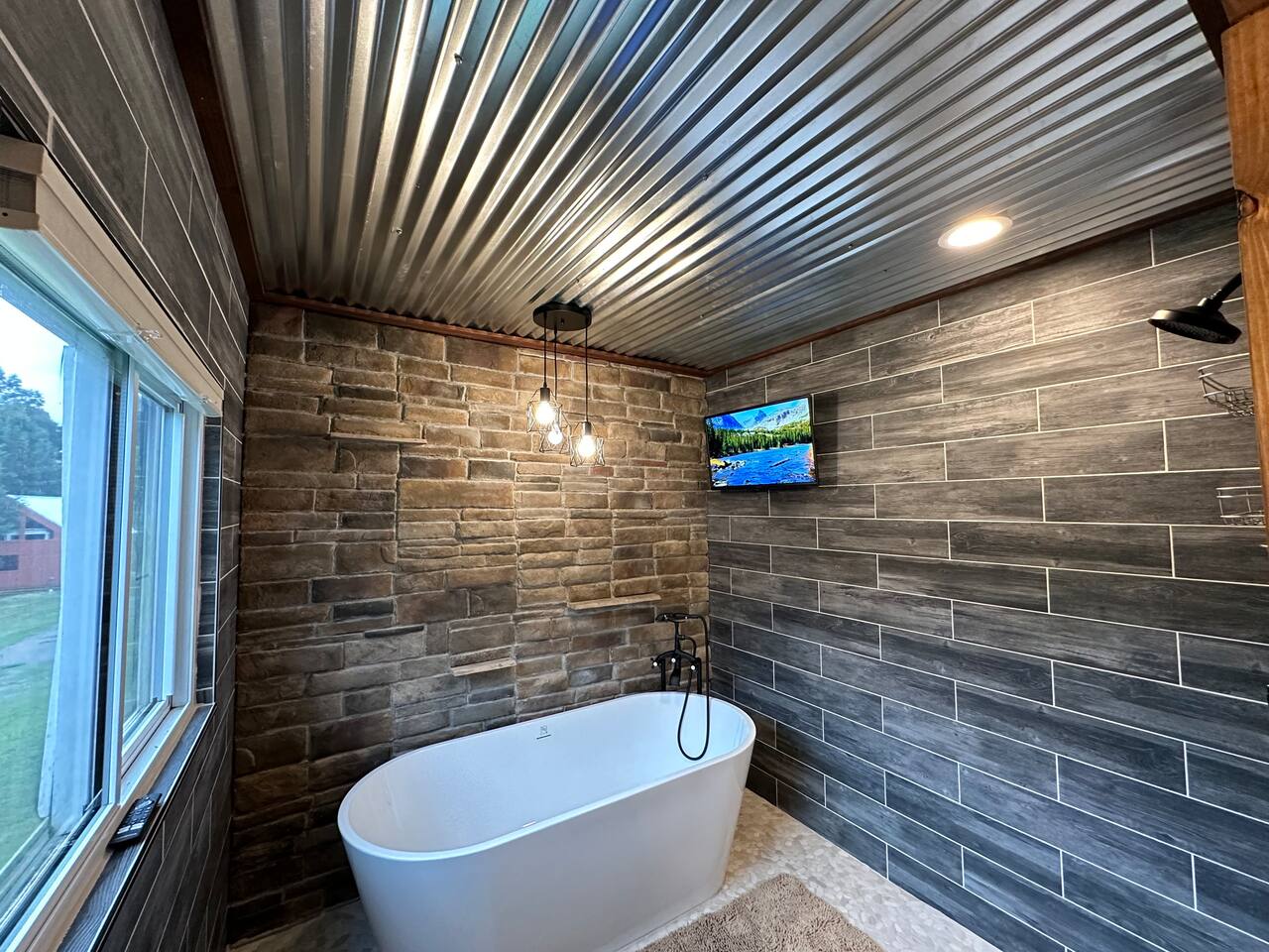 Experience Riverside Serenity in Glenwood! Nestled on the banks of the enchanting Caddo River, discover a cabin retreat that marries rustic charm with luxurious comfort. Whether you're looking for a romantic getaway or a family adventure, our cabin promises an unforgettable stay. Revel in the grandeur of a living room crowned with soaring cathedral ceilings. King-sized bed nestled in the master bedroom & a master bathroom beckons with a spa-style bath & shower area.